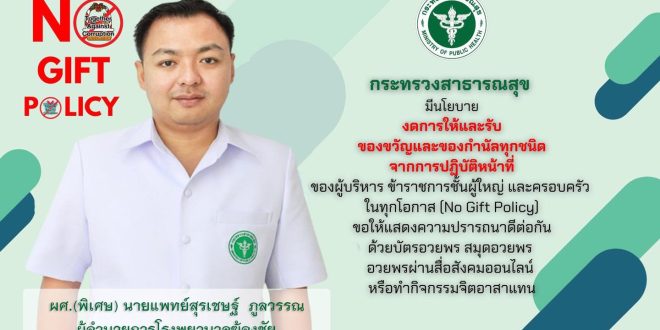 ประกาศเจตนารมณ์เป็นหน่วยงานที่เจ้าหน้าที่ของรัฐทุกคนไม่รับของขวัญ และของกำนัลทุกชนิดจากการปฏิบัติหน้าที่ (No Gift Policy) ของปีงบประมาณ พ.ศ. 2569