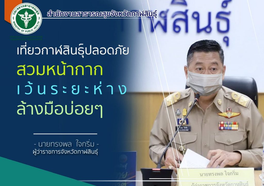 โรคติดเชื้อไวรัสโคโรนา 2019 (COVID-19) admin ธันวาคม 18, 2020 ข่าวประชาสัมพันธ์ Leave a comment 301 Views เที่ยวกาฬสินธุ์ ปลอดภัย สวมหน้ากาก เว้นระยะห่าง ล้างมือบ่อยๆ เพื่อเราจะปลอดภัยจากโควิด-19 ด้วยความห่วงใย 2020-12-18 admin